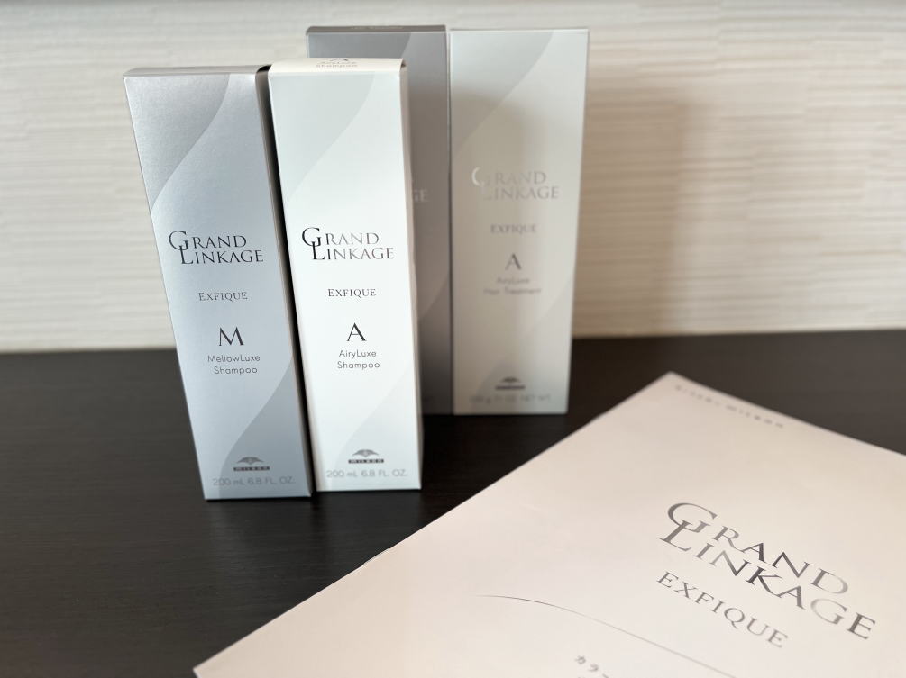 ミルボンから出ております『グランドリンケージ エクスフィーク』は年齢変化した髪と白髪、それぞれの脂質のバランスの違いに着目。トリプルオイルを配合して、エイジング×白髪×カラーダメージに悩む大人の髪を美しい毛流れに導きます。